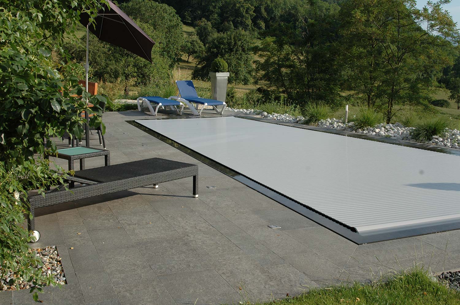 Diszkrét és elegáns fedési megoldás úszómedencére